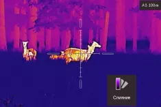 - Несколько цветовых тепловизионных палитр – горячие белые, красные, черные и цвет раскаленного железа.